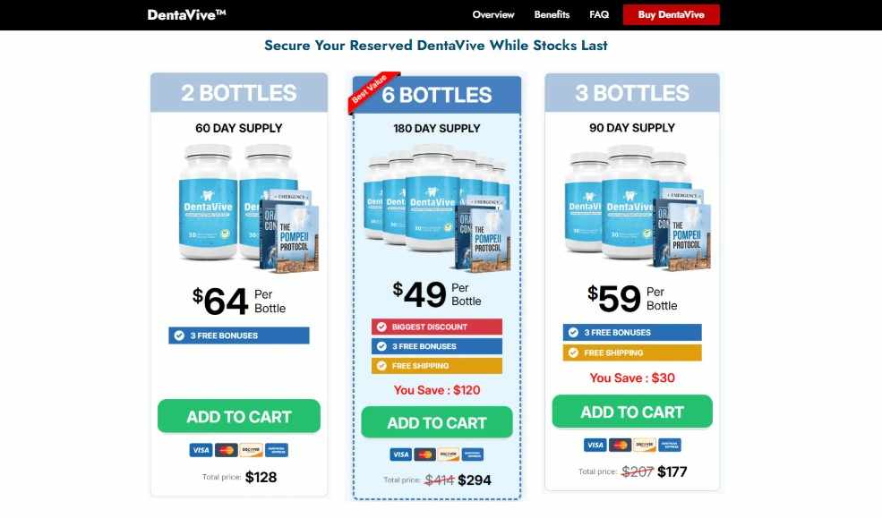 DentaVive is available only through its official website to ensure authenticity and quality. Purchasing from the official source also allows you to access special discounts and refund policies.